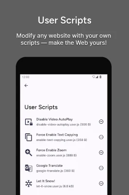 • User Scripts: Run your own custom extension scripts!