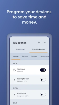 Get creative! Movie night, Sunday brunch, reading corner . . . Create the scenes you want and manage several devices with a single command. Let your home take care of you around the clock.