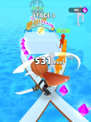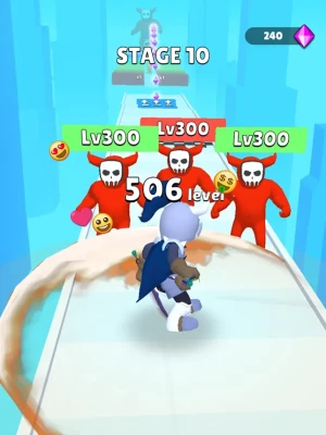Get out of my way! Defeat all the enemies that blocks in your way! Every time you slash them, your levels will go up. However, not all enemies you encounter along the way can be defeated. Choose an opponent you can defeat by making smart choices based on your level. Keep it up and try to reach the highest level!