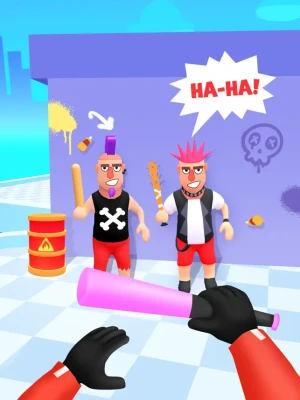 Remember, there are many enemies, all of different sizes, and they won't attack alone in a polite manner – they attack at once! Each of them is armed with baseball bats or huge spanners! But it's not a problem for you, right? It will hardly scare the best secret agent!