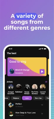 The app has many warm-ups. Karaoke warm-up will determine your voice timbre with the karaoke voice recording function. Karaoke songs will teach you how to sing correctly.
