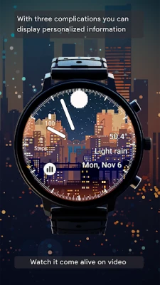 The watch face offers collectable live, dynamic and animated themes that can be changed. The themes of the landscapes have an ambient vibe during daylight, which tends to quiet down after sunset, while cityscapes light up with millions of colours after dusk.