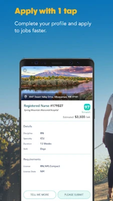 Instantly search jobs by pay estimate, location or shift. View all the information you need to find your perfect travel healthcare job and apply with just one tap.