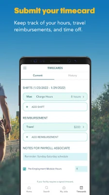 Once you’re on assignment, you can easily submit your timecard, request travel reimbursements and track your shifts all in one location.