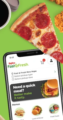 Search for fresh, ready-to-order fast food or snacks. Order for breakfast, lunch, dinner, or anytime between through the mobile app and pick up at your nearest Hy-Vee Fast & Fresh location.