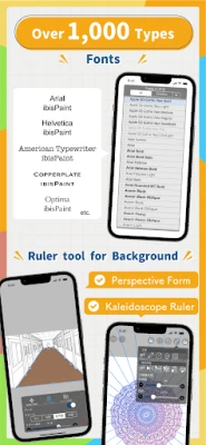 ibis Paint is a popular and versatile drawing app downloaded more than 460 million times in total as a series, which provides over 47000 brushes, over 27000 materials, over 2100 fonts, 84 filters, 46 screentones, 27 blending modes, recording drawing processes, stroke stabilization feature, various ruler features such as radial line rulers or symmetry rulers, and clipping mask features.