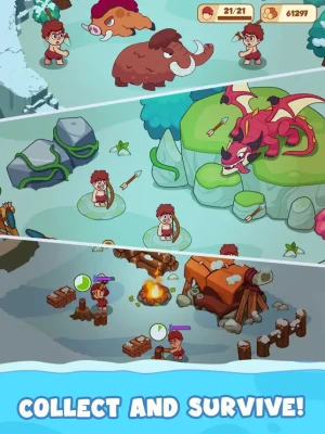 Step into a captivating city-building game during the ice age in Icy Village: Tycoon Survival. You're in charge of creating the very first village on Earth, dealing with the big job of collecting resources and building society. Your leadership will guide this new village through tough challenges, helping it not only survive but also thrive in the cold chaos.