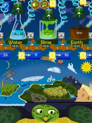 As you alchemy laboratory grows, you can spend elements to upgrade the transmutation power or to create a whole world of you own. Once created, the world will help you boost your laboratory.