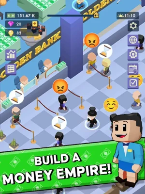 Run your own Bank, Print money, serve clients, give out loans and get Rich in the newest Idle Business Tycoon. Take care of the finances, handle cash flow and Grow your Bank Business to become a Billionaire.