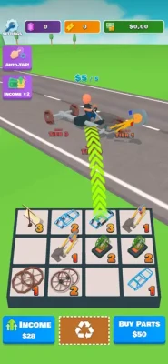 In Idle Racer, you start the game with a basic car that you can upgrade using the in-game currency earned simply by tapping the screen. The more you tap and click, the more in-game money you earn. You can spend this money on purchasing new parts for your car, such as engines, tires, spoilers, and much more. You can also merge two parts of the same level to create a higher-level part, which will increase the speed and power of your car.