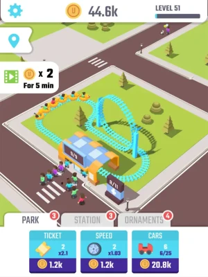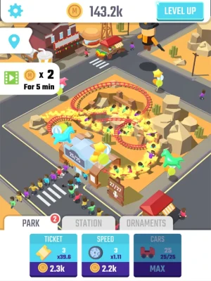 - Unlock CRAZY TRACKS - Welcome NEW TOURISTS - Sell ICE-CREAMS, BURGERS and so much more! - Upgrade your park to MAKE MORE MONEY