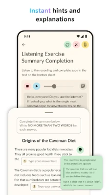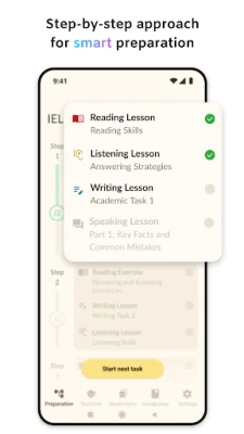 Mastering IELTS listening and IELTS speaking is also essential. Our app provides tools to improve your English listening and speaking skills. Interactive dialogues replicate real IELTS speaking tasks and a wide collection of audio materials designed to simulate the IELTS listening environment, increasing your confidence and preparing you for any challenges on the exam day.