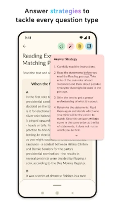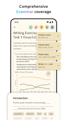 Enhance your ability to write well-structured IELTS essays and letters confidently. The app offers answer strategies and a powerful writing prompts tool to ensure your IELTS essay meet the standards required for a high score. Built-in grammar resources provide clear explanations and examples to make your writing more persuasive.