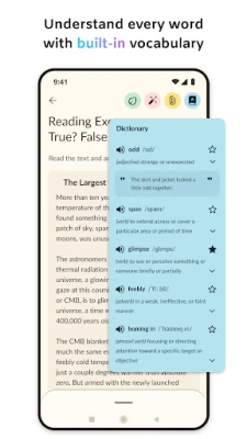 Reading comprehension is crucial for achieving success in the exam. Our app offers in-depth lessons that cover answer strategies for all question types of IELTS reading and expert tips and tricks. Exercises simulate real IELTS reading passages, with detailed answer explanations, helping you pass the reading section with the highest score.