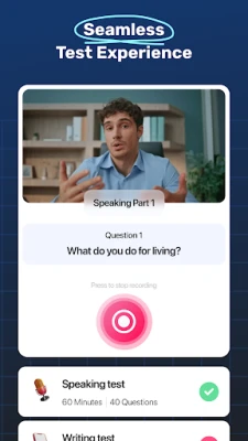 One IELTS allows you to monitor your preparation and track improvements. The app generates detailed progress reports and scores, helping you stay focused and reach your target IELTS score. Whether you're working on IELTS speaking practice or IELTS writing, you'll always know where you stand.