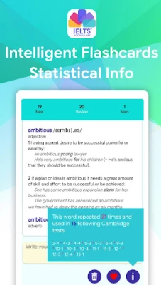 The International English Language Testing System (IELTS) became the world’s most popular English-language test for study, work and migration purposes. IELTS Vocabulary Flashcards is the app that covers the most important words used for the real IELTS exam and help you to achieve your goals.