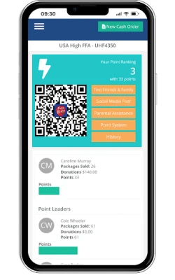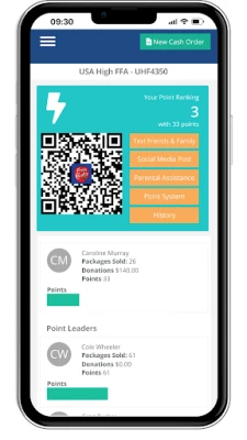 - Student Engagement: Students can easily share their fundraiser via automated messages, social media posts, and parent assistance. The built-in gamification system fuels friendly competition by displaying student performance rankings.