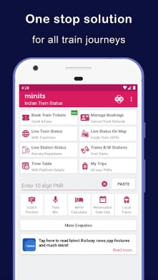You can also add home screen widgets for ultra-quick, one-touch access to train, station & PNR status and time tables, and even search trains by voice with with "Train Mic", in app & new widget.
