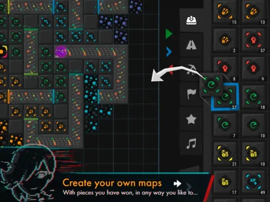 - Music tracks are stored in maps and played with synthesizer! Players can create a great map with any music and share it with others.