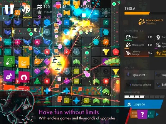 - Towers gain experience, abilities, different aiming strategies and can be heavily upgraded