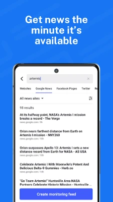 • Stay up to date with breaking news and create monitoring feeds