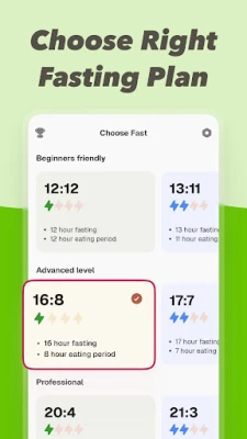 You can begin with the beginner fasts, slowly and gradually you can adapt to the experienced and the professional ones. You get a start timer and a goal timer that monitors your progress.