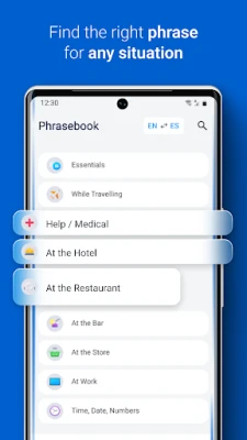 - Phrasebook with hundreds of useful translated phrases.