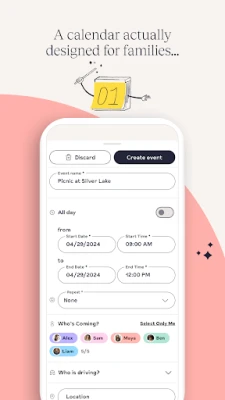 - Tag who is driving your kids to events between family members, caretakers and friends