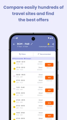 Choose the perfect flight for you in just a few seconds: compare offers and complete your purchase directly on the airline's or agency's website.