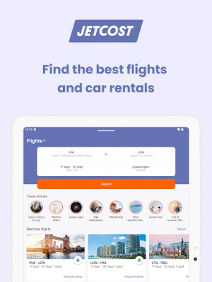 Search, compare and book flights and rental cars with the Jetcost travel app.