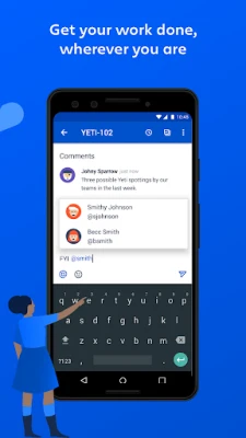 The Jira Data Center app lets teams who use Jira collaborate and give updates from anywhere.