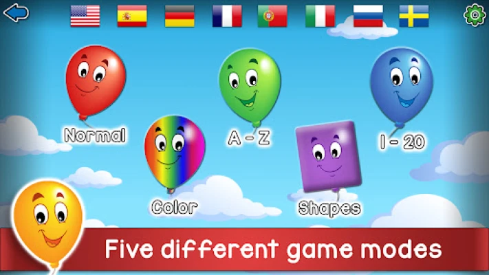 All modes are suitable for toddlers as an educational app (2, 3, 4 or 5 year old). Popping balloons is a fun English learning app, and with a variety of languages this not just a way to learn English but also learn Spanish, French, German and more.