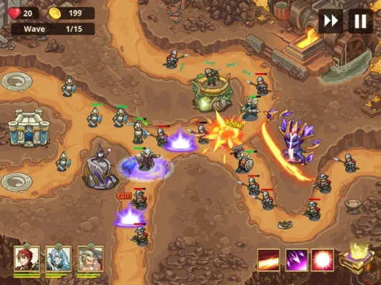 One day, the Eradel kingdom is suddenly attacked by the Goblin army, which used to be far away from man's land. In the critical situation, Prince Lucius and his companion had to leave the kingdom of Eradel and seek help from other allied races. On his journey, he will have to overcome countless challenges as well as different enemies and need talented tacticians to help. Let’s build powerful towers, train royal soldiers of Eradel, control mighty heroes and destroy the enemies!