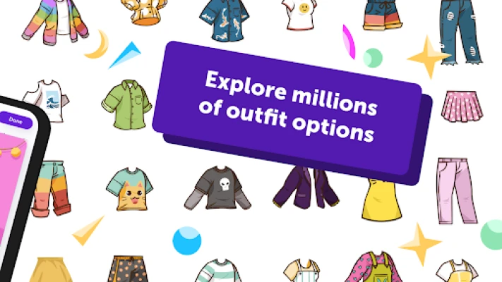 * Millions of character combinations: choose different outfits, hairstyles, skin tones and expressions