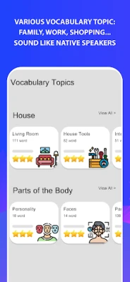 The dictionary of the apps has human voice pronunciation for each common phrase to improve your speaking skill.