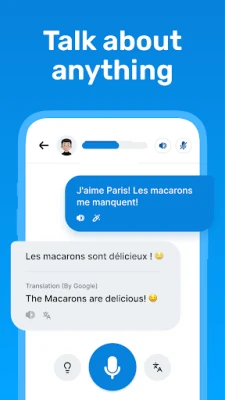 In the app, you can simply chat or speak with dozens of AI Bots on anything you like, in your desired language, and get auto-corrected by the AI.