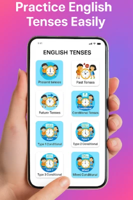 The app also explains the English Tense System in a simple, easy-to-follow way. Learn how to use past, present, and future tenses accurately in your conversations.