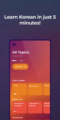 The app is free for casual learners: more than 2700 words in 150+ topics are all available for everyone. Hardcore language learners can subscribe for premium to progress faster with unlimited Korean language learning time.