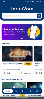 LearnVern app allows students to learn 75+ Courses for free all taught in Hindi and other Indian languages like English, Bangla, Tamil, Telugu, Gujarati, Marathi. Free Course Tutorials are taught by expert trainers of Computer Science, Mechanical, Civil, Business, Graphic Design, Spoken English with Government Certificate.