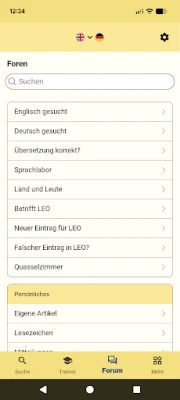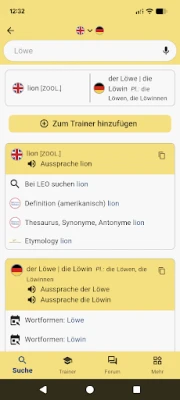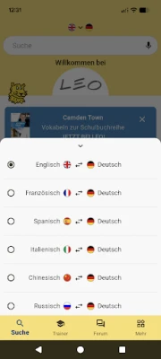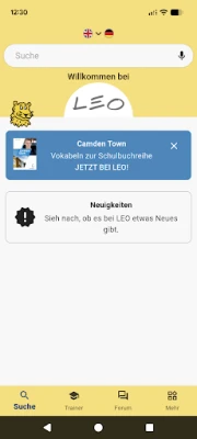 The application offers access to the LEO dictionaries, vocabulary trainer and forums.