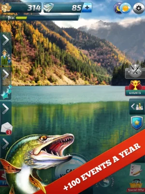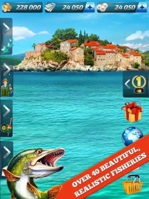 Travel to different photo-realistic locations in nature across all continents, like Rio Negro, Alaska, the Norwegian Fjords, American Lakes, South American rivers or oceans. Find the most appropriate fishing gear for each location and choose between a fishing rod, a net, or other options.