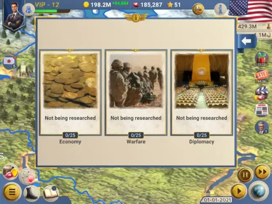 • Study modern technologies to enhance your military, diplomacy, and economy.
