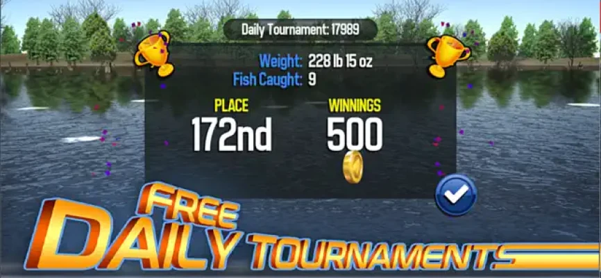 Each day you head out fishing, you are automatically entered into the free Daily Bass Tournament! There is no fee and no registration, so getting in to win prizes is as simple as a flick of the finger. Bracketed play for the ultimate challenge.