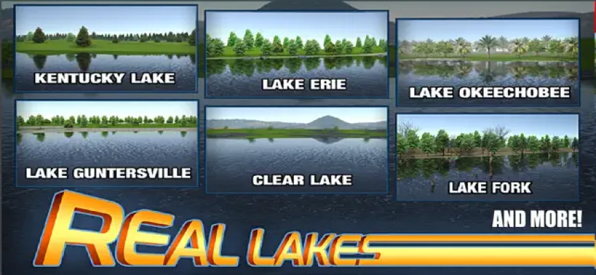 You won't catch bluegill or perch here... this game is for Bass Fisherman only! Catch Largemouth, Smallmouth, Spotted, Redeye, Peacock, Shoal, and the always-elusive Striped Bass on 10 of the hottest fishing lakes of 2025!