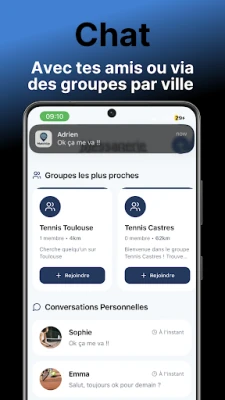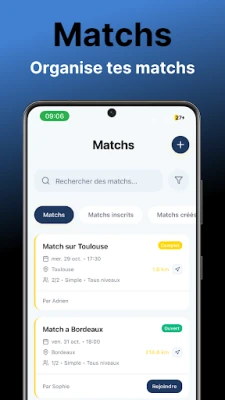 • Trouvez des partenaires par niveau (Débutant à Classé FFT)