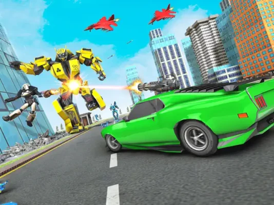 The city is under attack by evil robots and this future robot games with jet robot simulator has a super robot transformation in the air with mech warriors. The terrifying destruction of the mafia has to be curtailed by transforming jet game of the week. The futuristic battle of airline police is here with super robots and ultimate plane to transform. Mech wars conquest has begun and the super robot transforming games is the best robot games in the world. The fly bot fighting is the ultimate machine build for war with dog fight battle in the air. The transform robot has to find the on ground mission for transform robot games or air robot games & fly robot games. You are part of the air police force in this flying robot simulator where you use all the ammunition with metal wings to shoot the enemy while being a transforming jet in mech fighting game. Earn victory and surge as savior with best controls of fighter jets & helicopters in transform robots. The air robots simulator with fly bot is the best police robot games available to play. Download the airplane robot games and fight the evil.