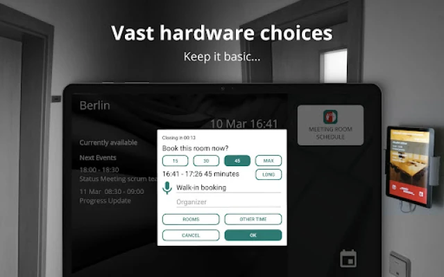 Meeting Room Schedule can be easily connected with most used business services and can be ready for deployment in less than five minutes! No server setup needed.