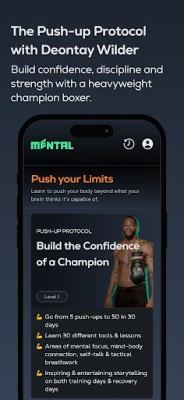 -Push-Up Protocol with Deontay Wilder: Go from 5 to 50 push-ups in 30 days and train your body & mind alongside former heavyweight champion Deontay Wilder. This guided protocol blends physical exercise with mindset training to build confidence & discipline through tools around self-talk, visualization, breath-work & mental focus.
