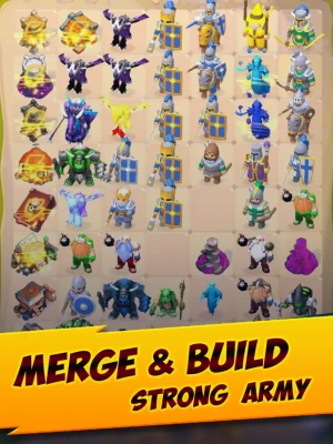 • EVERYTHING’S COMING TOGETHER: It’s not just soldiers you can merge in this game, you can also level up armor, weaponry, clothing, potions, portals and much more. If you see two of an object on the board, bring them together and find out what you get. Merging can unlock a whole host of in-game benefits, from extra currency to improved fighting stats to energy boosters that will allow you to merge even more.