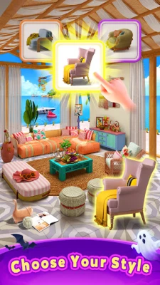Decorate and Design: Assist Sophie in becoming a master merge designer. Use merging and matching to complete tasks, adding unique decor elements to each client's dream home, making every room design truly one-of-a-kind.